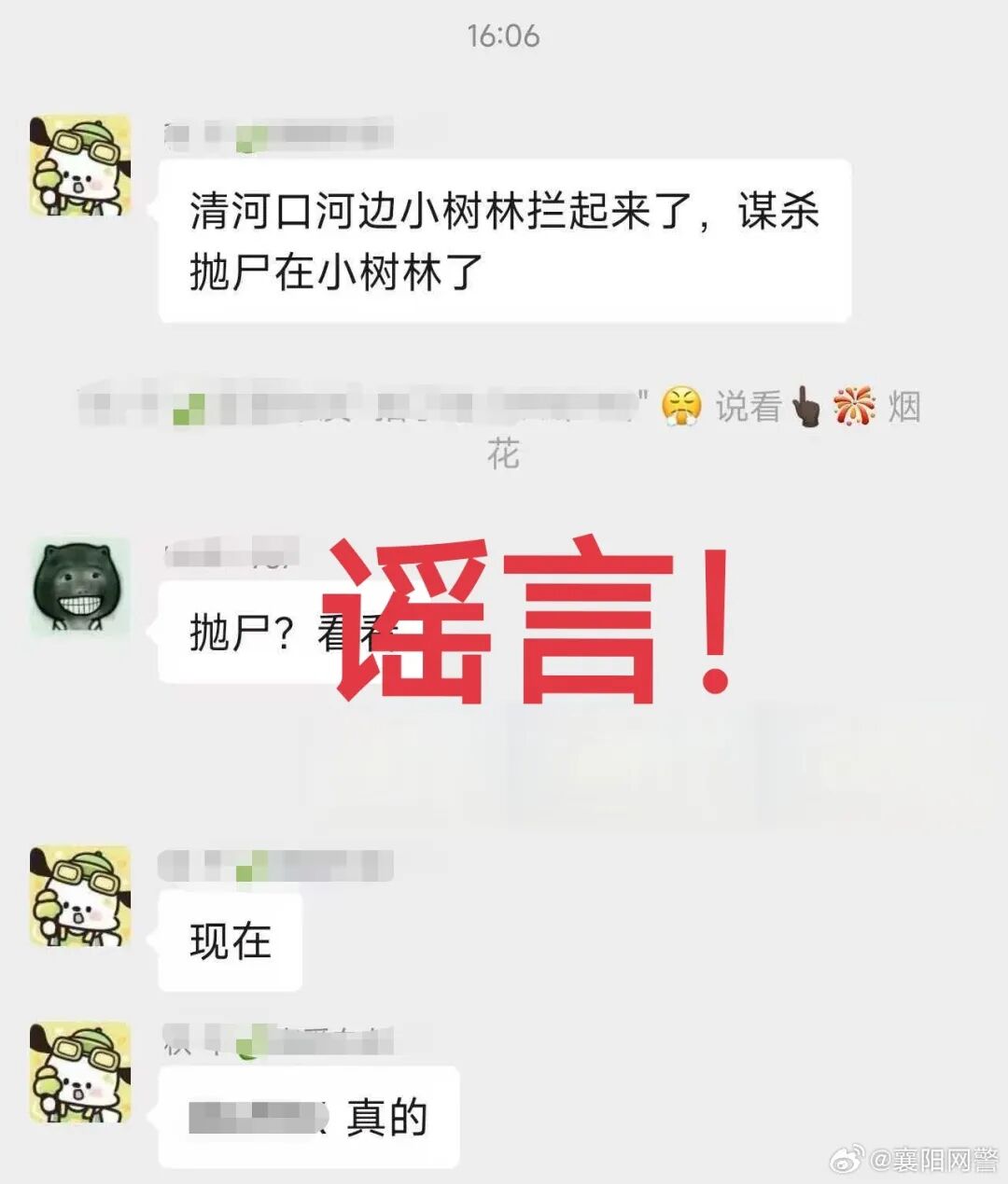 近日,襄阳网警工作中发现有网民在微信群内发文称:“清河口河边小树林拦起来,谋杀抛尸在小树林…。”引发网民关注。经警方核实,该信息纯属编造的谣言,该辖区均未发生相关警情和报警。网警提醒:网络不是法外之地,谨言慎行要牢记,对网上各类“博眼球”信息,广大网民要加强鉴别、识别,做到不造谣、不传谣、不信谣。