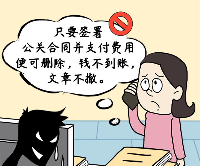 1.发布涉企负面信息后,以“删帖”“撤稿”等名义,向企业索取“删稿费”“公关费”;